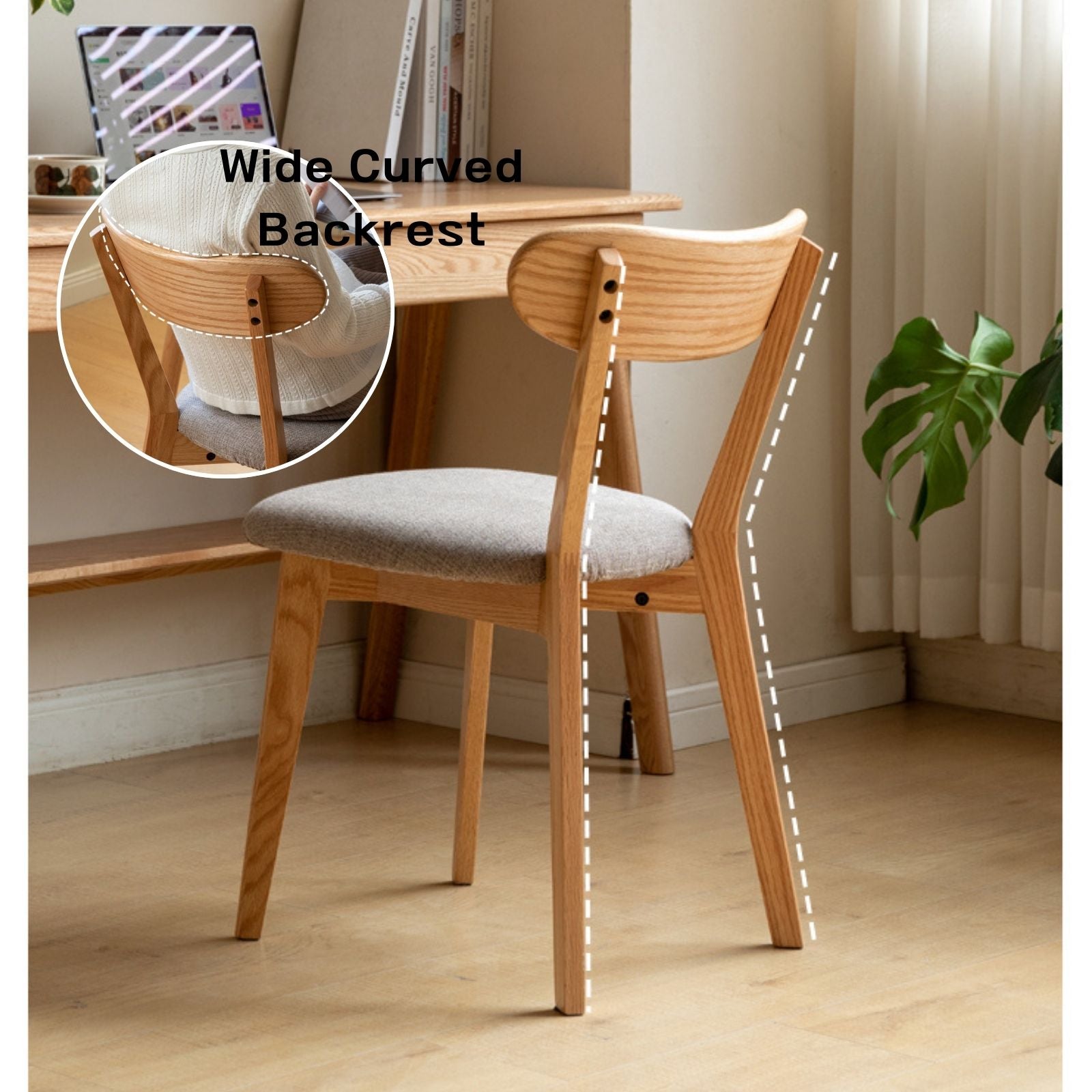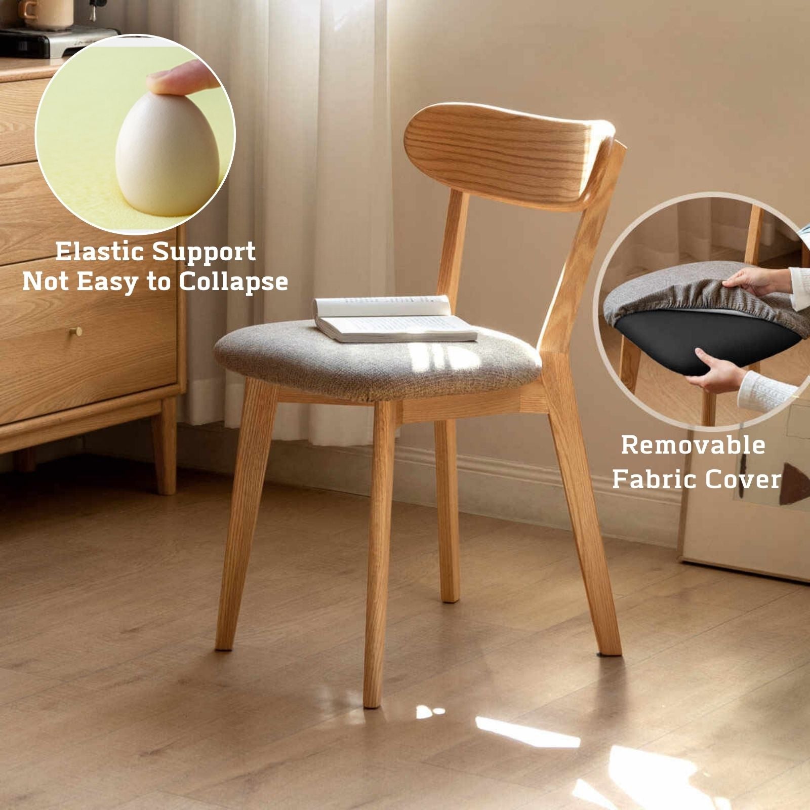 100%Oak Wood Upholstered Dining Chairs, Oak Wood Kitchen Chairs with Wide Rounded Backrest