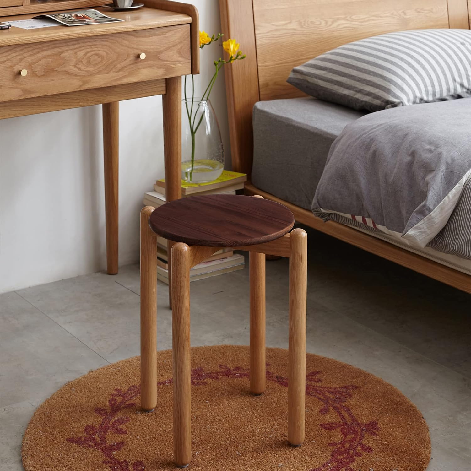 100% Solid Wood Stackable Stools Modern Barstools (Natural /Walnut)