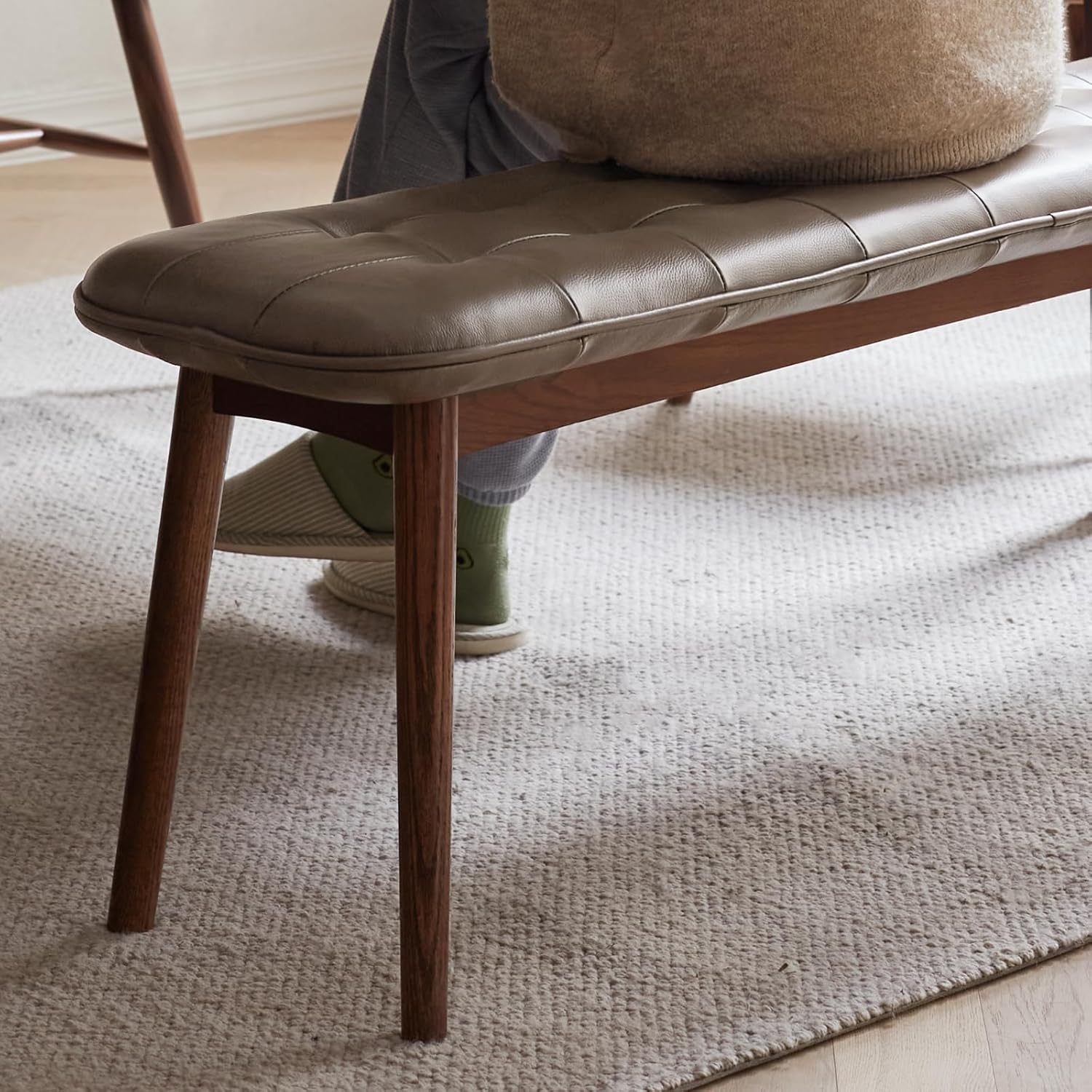 100% Solid Wood Beige Color Bedroom Bench Soft Leather Cushion (Brown/Off-white/Khaki)