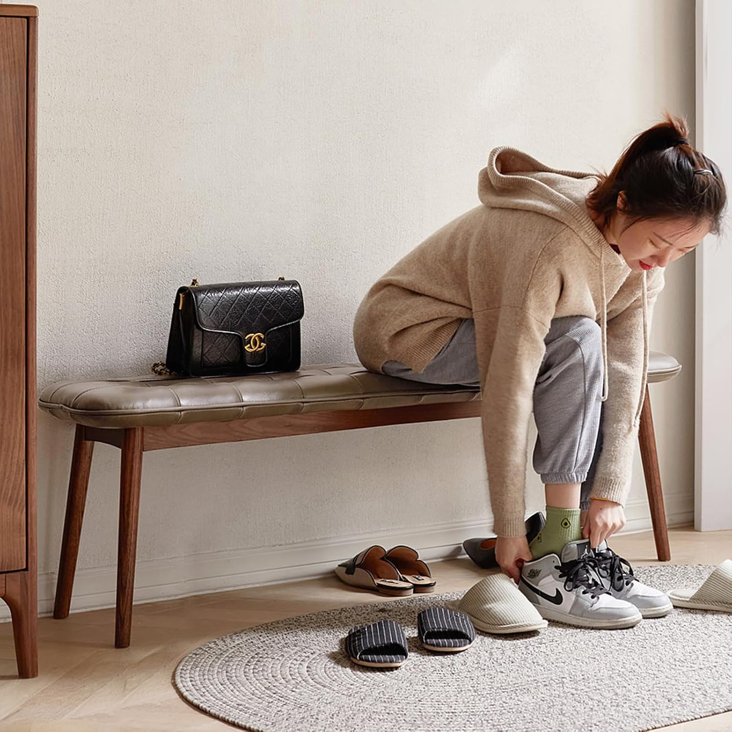 Perfectly suitable for various uses, such as a bench at the end of a bed, a dining bench, or an entryway bench.